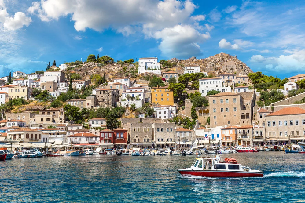Daily boat connections to Hydra, the stately island with neoclassical mansions, maritime history, and timeless elegance.